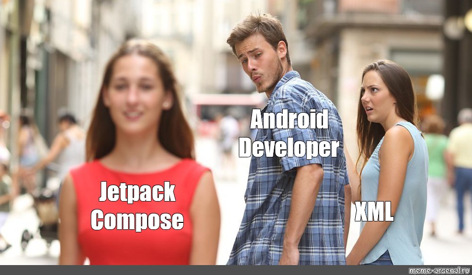 The Distracted Boyfriend meme, featuring a boyfriend looking at another woman while his girlfriend looks on in disapproval, is often used to satirize the temptation to switch to a new technology or framework. Android developers might use this meme to express their interest in a new language or tool, even though they are already committed to using existing ones.